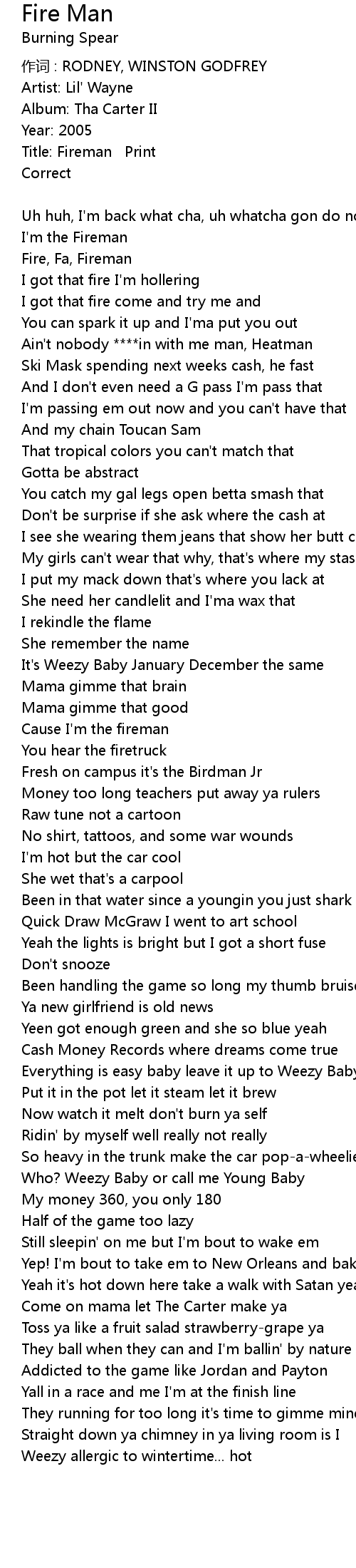 | Cause I' m the fireman | |