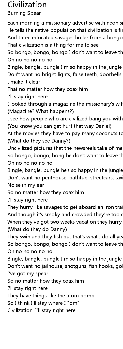 Bingle, bangle, bungle I'm so happy in the jungle I refuse to go