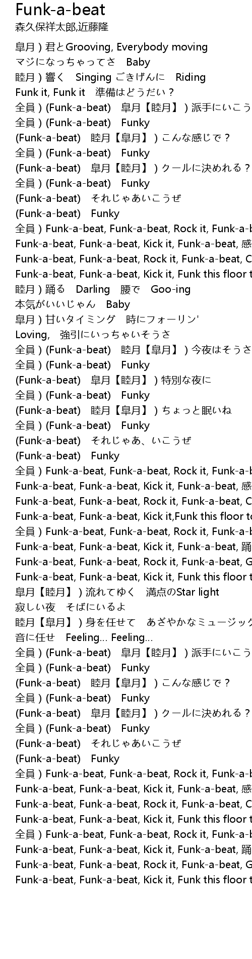 | [01:36] | Funk-a-beat, Funk-a-beat, Kick it, Funk-a-beat, 感じるぜ Mood |
