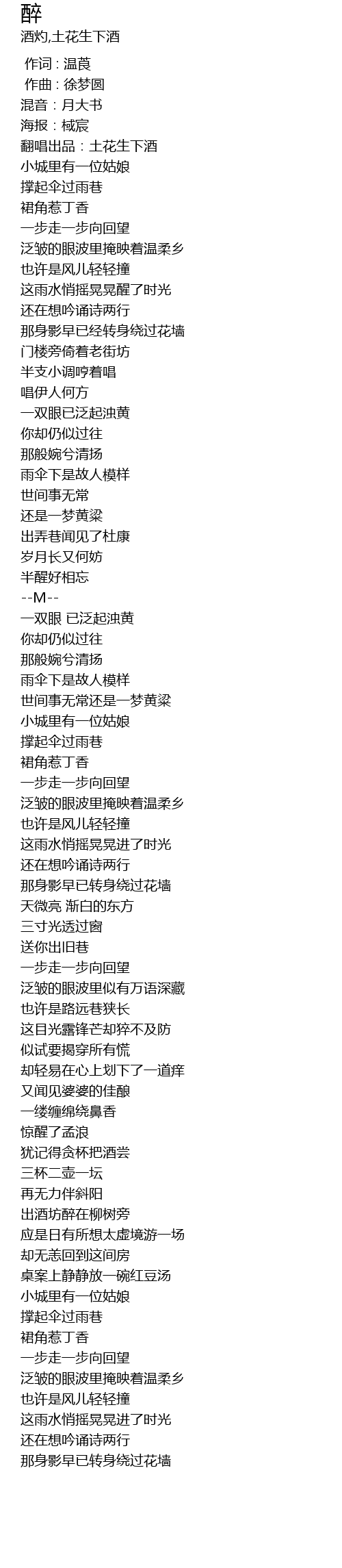 | [00:38.53] | 翻唱出品:土花生下酒 |