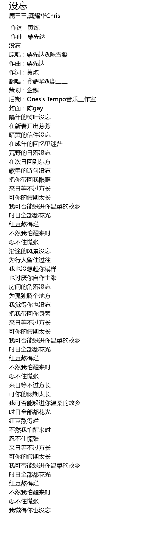 | [00:11.658] | 翻唱:龚耀华&鹿三三 |