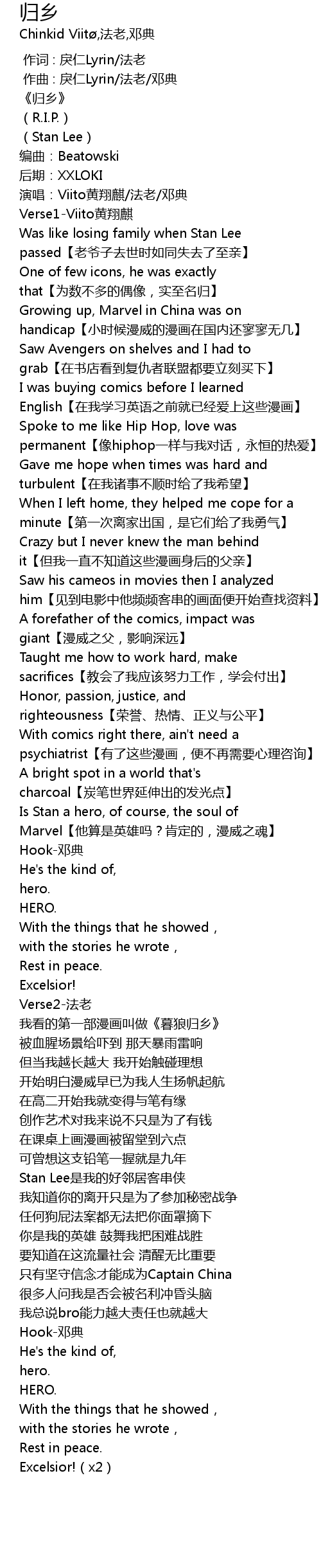 | [00:19.453] | Was like losing family when Stan Lee passed lao ye zi qu shi shi ru tong shi qu le zhi qin |