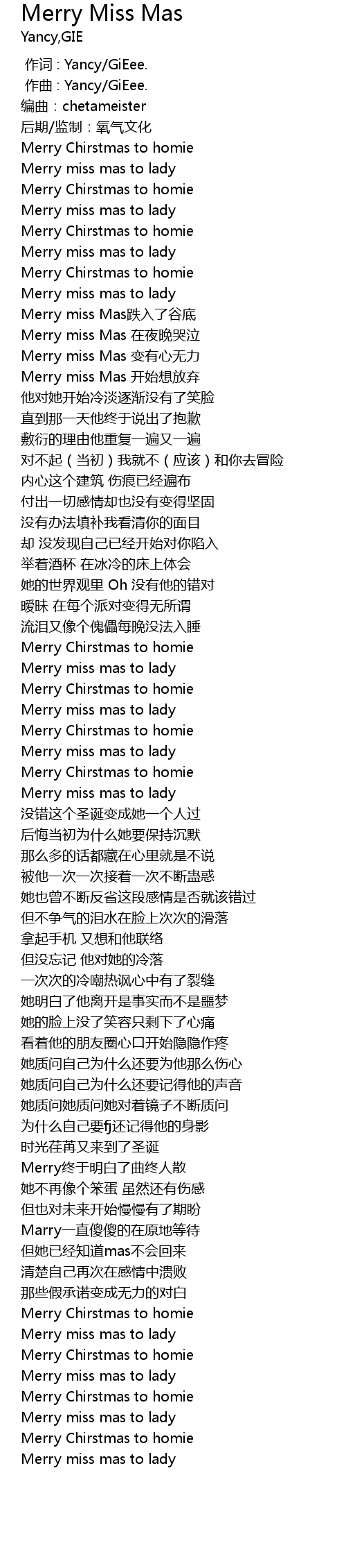 | [00:50.779] | Merry miss Mas 变有心无力 |