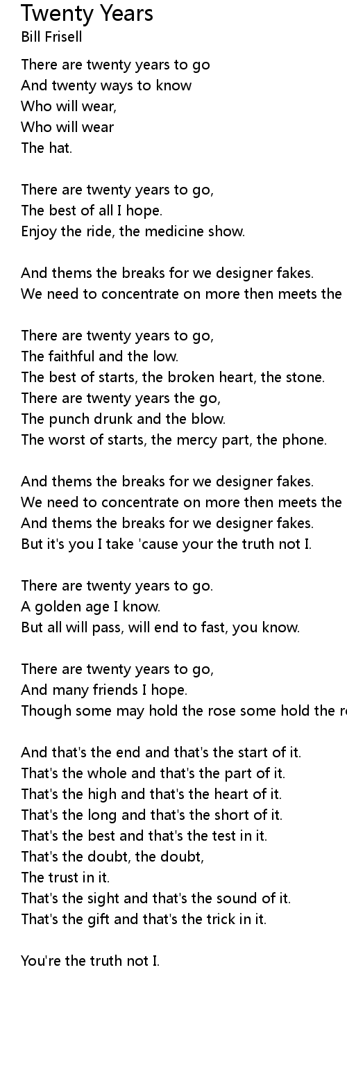 There are twenty years the go, |