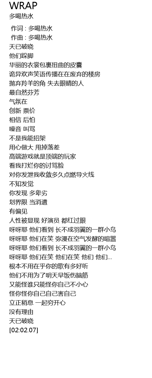 | [00:01.000] | zuò qǔ : duō hē rè shuǐ |