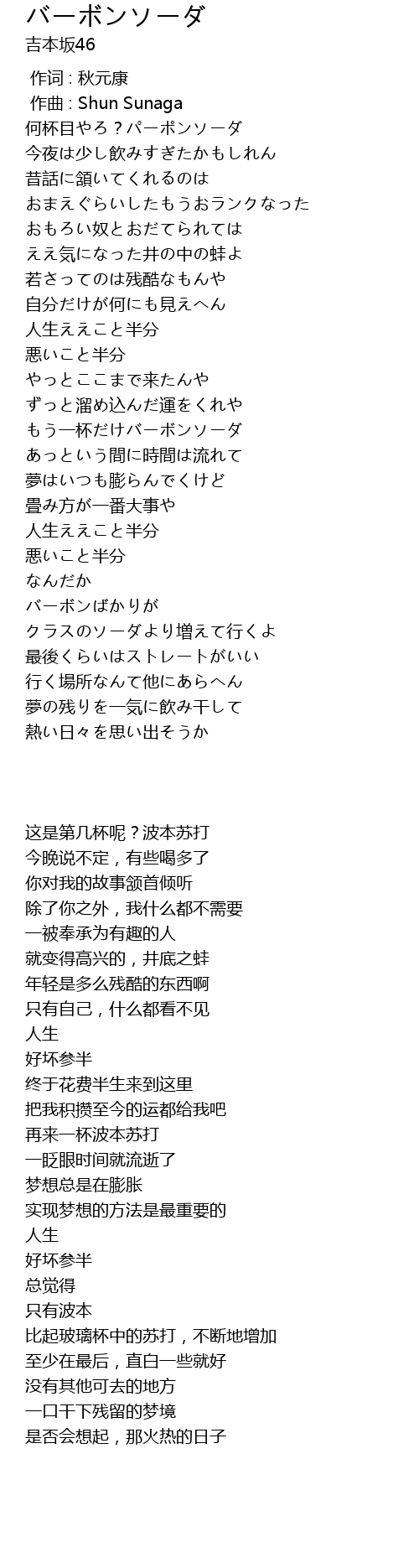 | [00:23.105] | 这是第几杯呢?波本苏打 |