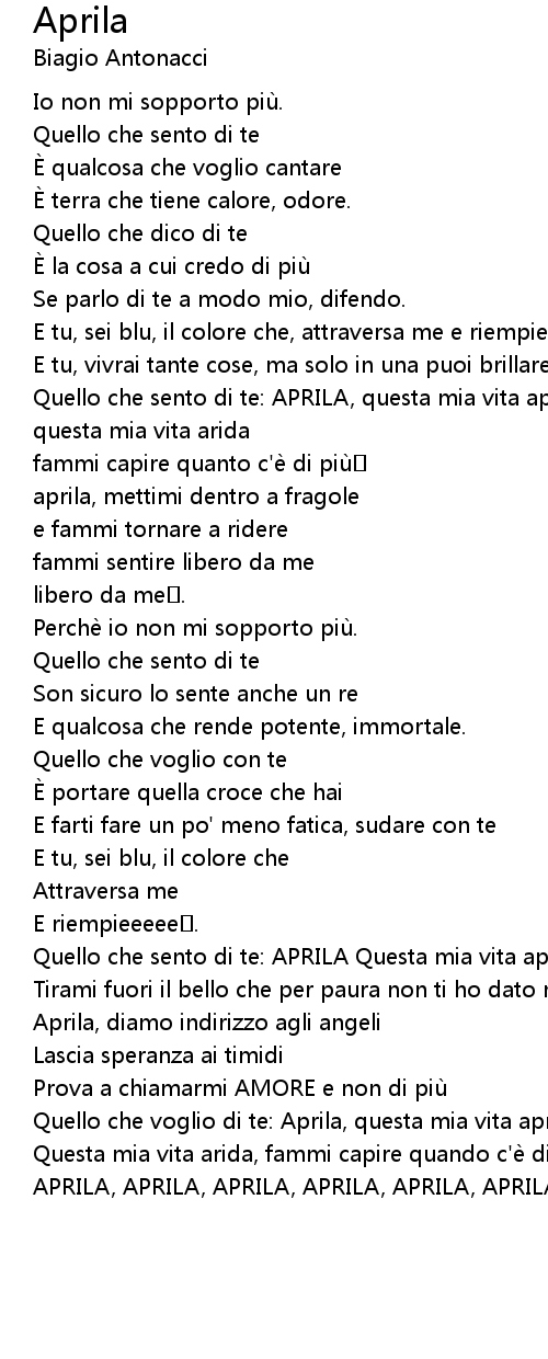 | Quello che sento di te: APRILA Questa mia vita aprila, | |
