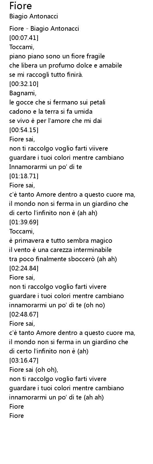 | [00:06.63] | Fiore - Biagio Antonacci |