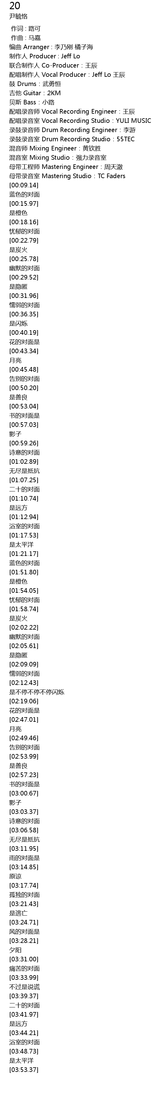| 歌曲 | 20 |