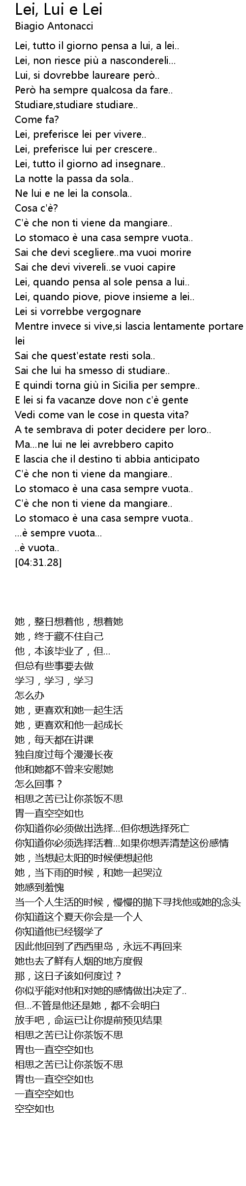 | [00:13.47] | Lei, tutto il giorno pensa a lui, a lei.. |
