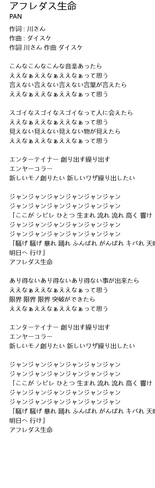 | 「ここが シビレ ひとつ 生まれ 流れ 流れ 高く 響け 」 | |