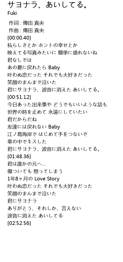 | [01:37.63] | 君にサヨナラ、波音に消えた あいしてる。 |