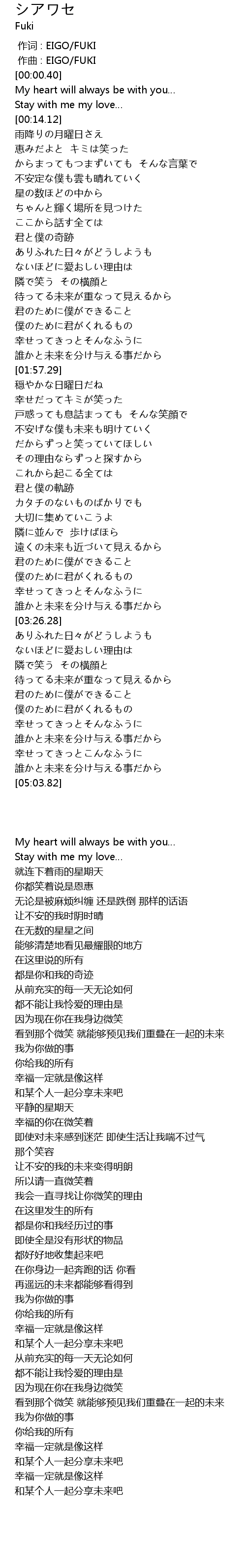 | [00:00.020] | zuo qu : EIGO FUKI |