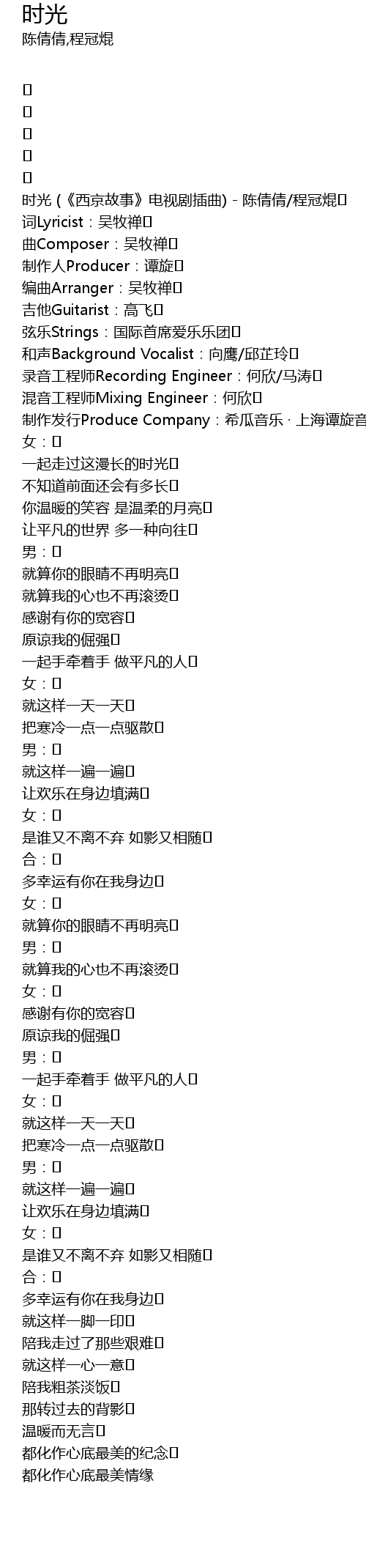 | 时光 (《西京故事》电视剧插曲) - 陈倩倩/程冠焜 | |
