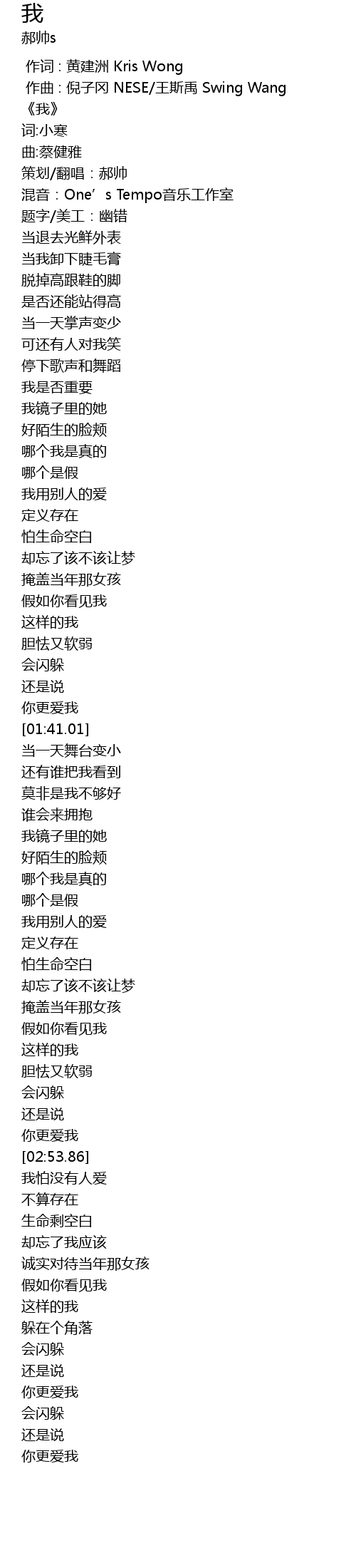 | [00:00.000] | zuò cí : huáng jiàn zhōu Kris Wong |