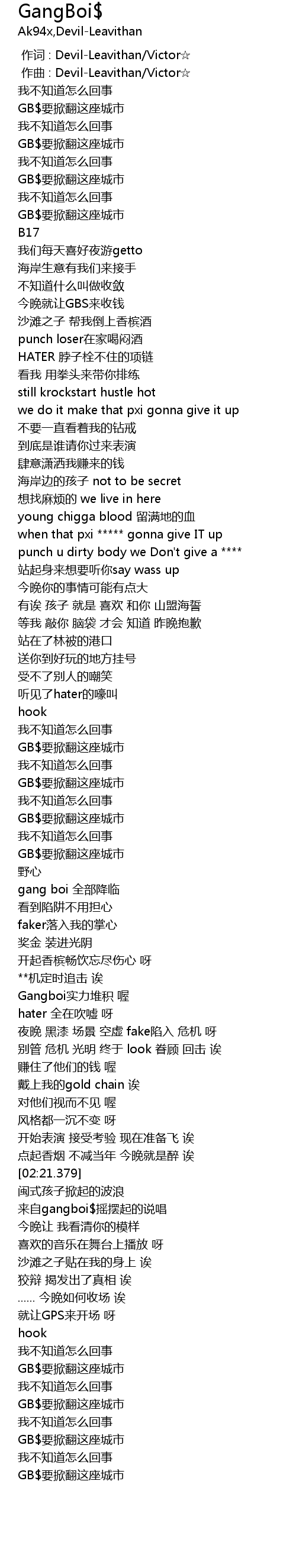 | [00:17.702] | GB$要掀翻这座城市 |
