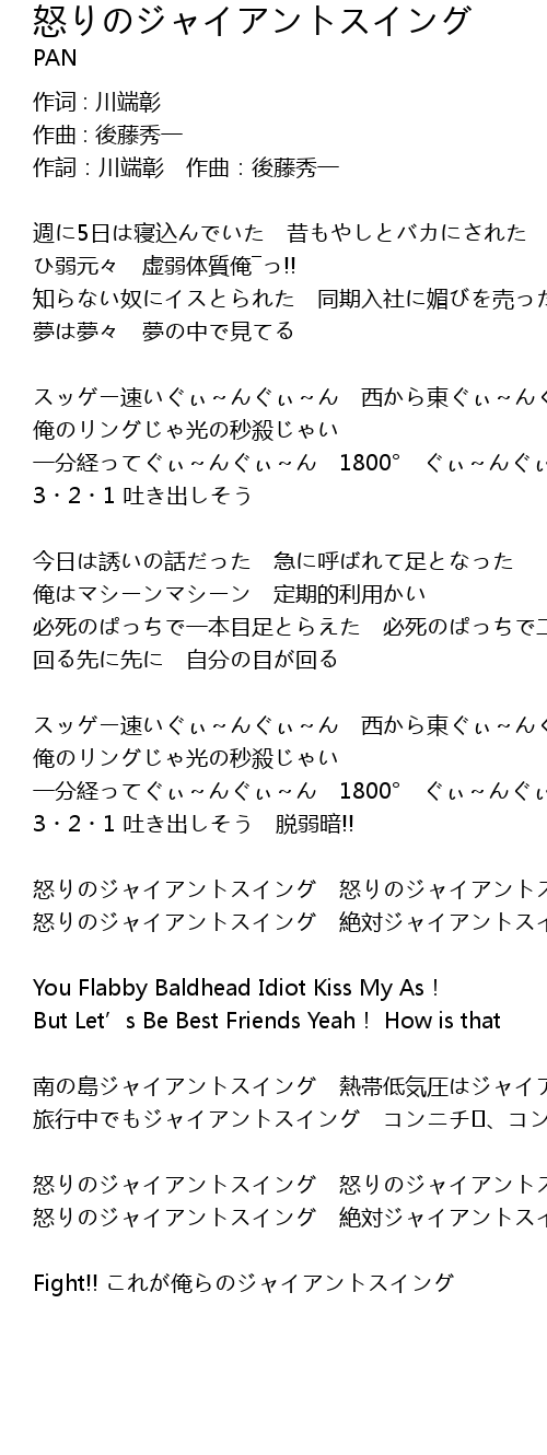 | 歌曲 | 怒りのジャイアントスイング |