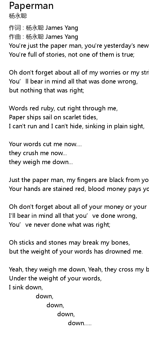 | 作词 : 杨永聪 James Yang | |