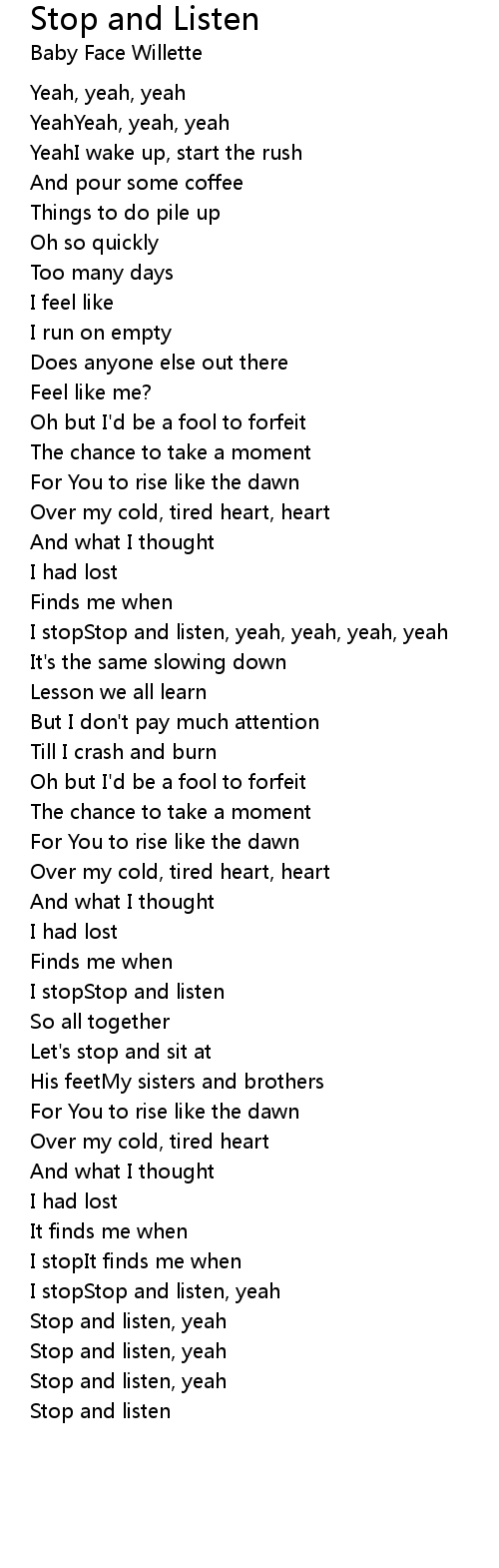 Stop and listen, yeah |