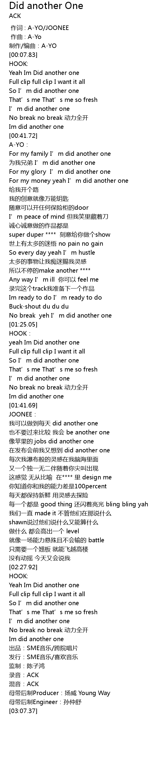| 歌曲 | Did another One |