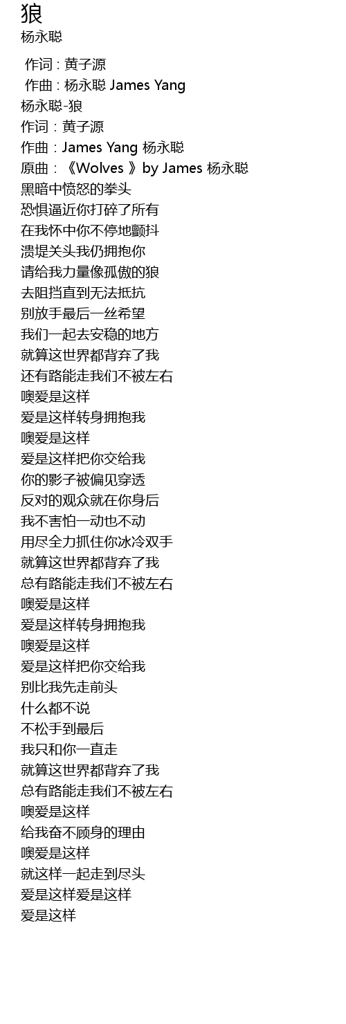 | [00:00.663] | yuán qǔ: Wolves by James yáng yǒng cōng |
