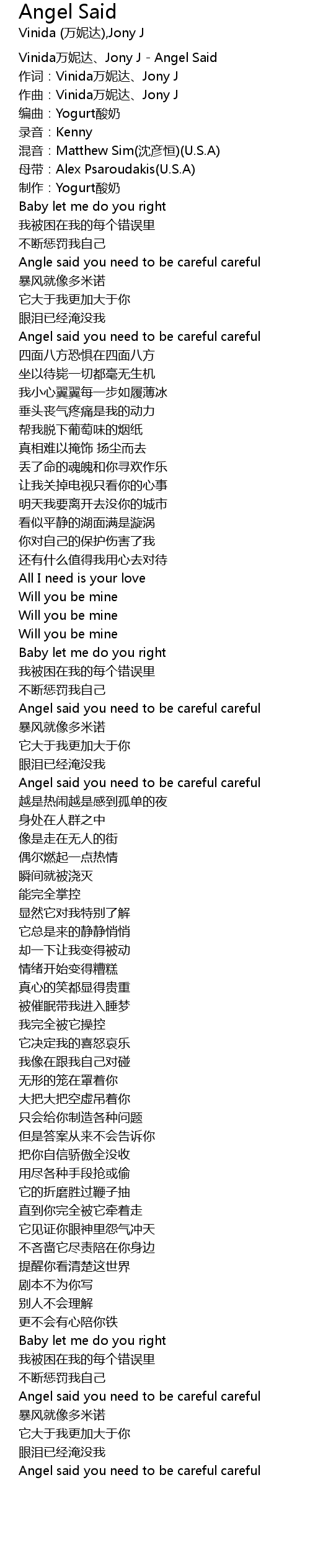 | [01:51.35] | Angel said you need to be careful careful |