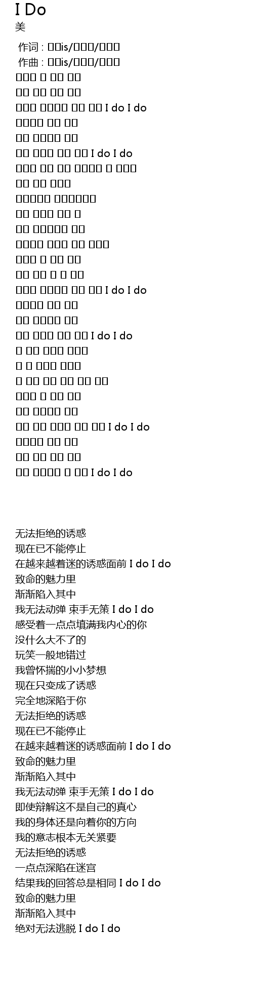 | [00:09.90] | 在越来越着迷的诱惑面前 I do I do |