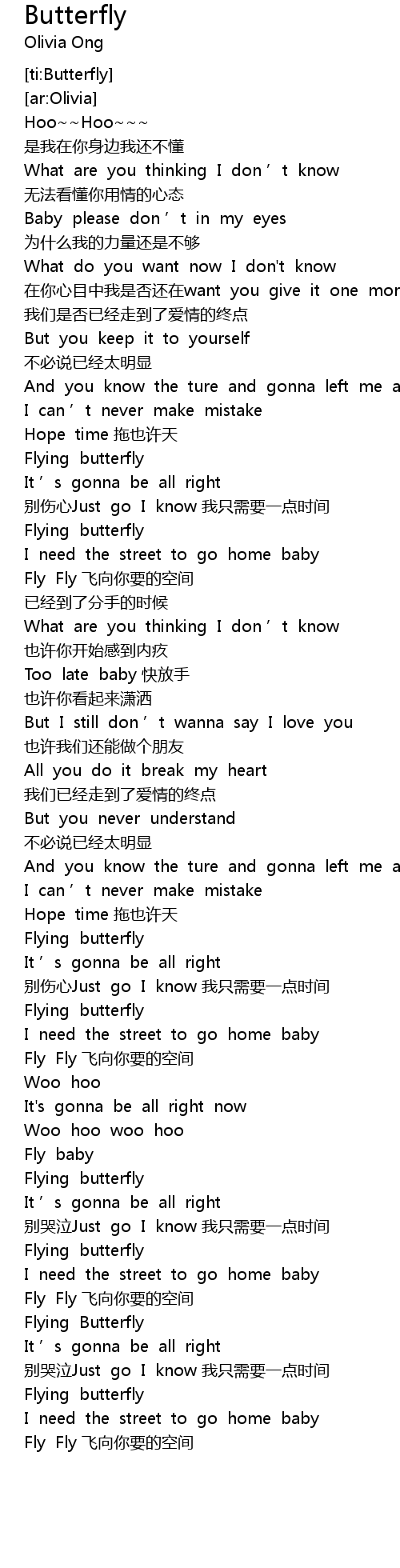 | [03:13.894] | Fly Fly fēi xiàng nǐ yào de kōng jiān |