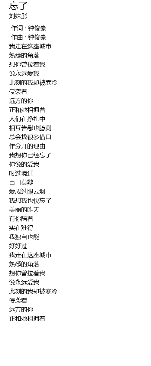 | [01:07.208] | wo xiang ni yi jing wang le |