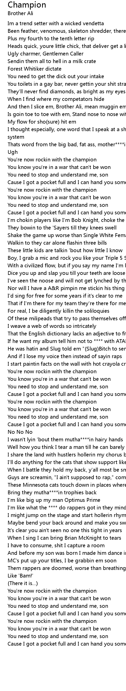 Thats word from the big bad, fat ass, mother****in, Brother Ali |