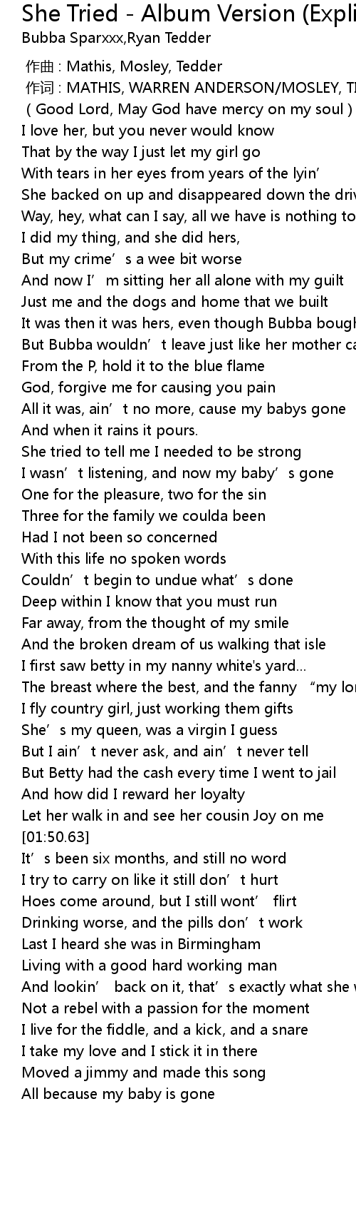 | 歌曲 | She Tried - Album Version (Explicit) |