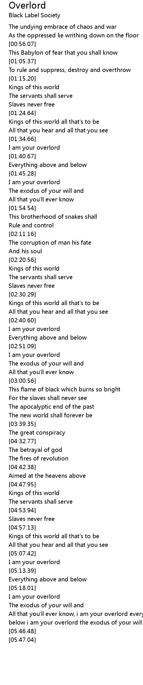 All that you'll ever know, i am your overlord everything above and below i am your overlord the exodus of your will and all that you'll never know |