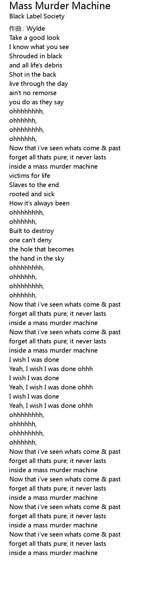 | 歌曲 | Mass Murder Machine |