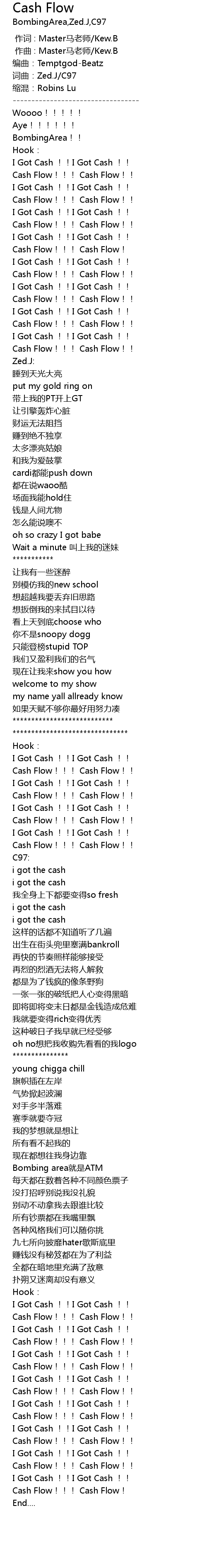 | [01:33.046] | I Got Cash !! I Got Cash !! |
