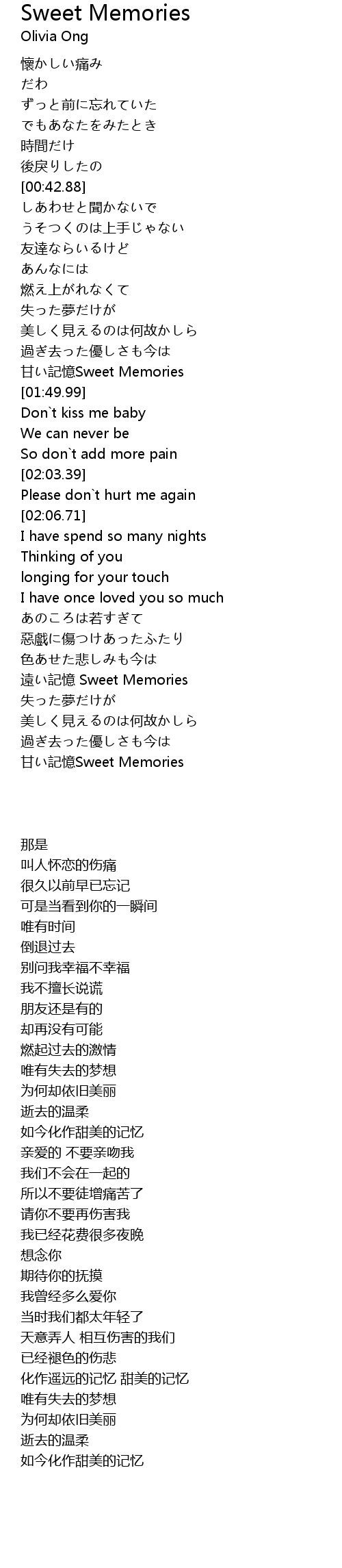 | [02:44.42] | 遠い記憶 Sweet Memories |