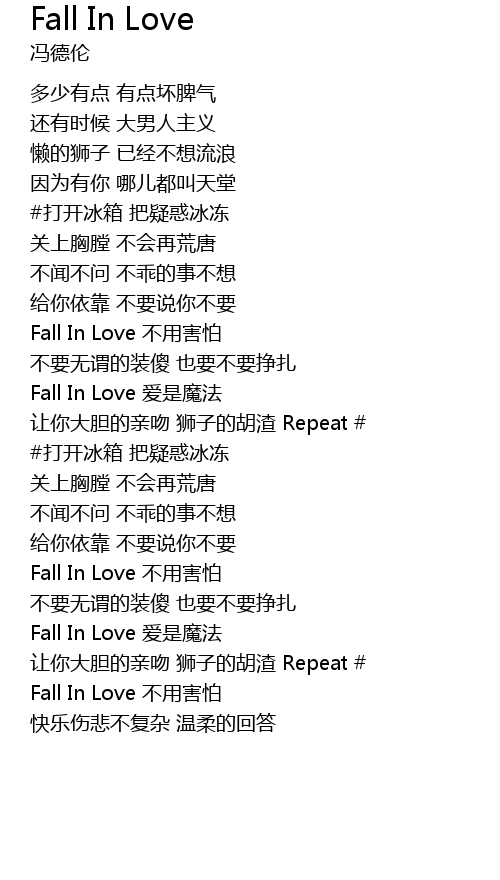 | [01:29.58] | Fall In Love 不用害怕 |