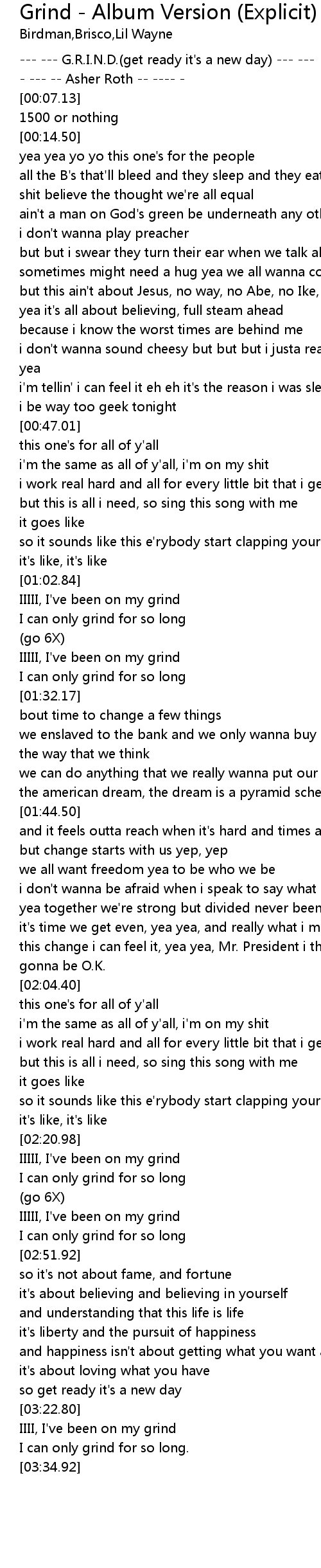 | [00:01.08] | --- --- G.R.I.N.D.(get ready it's a new day) --- --- |