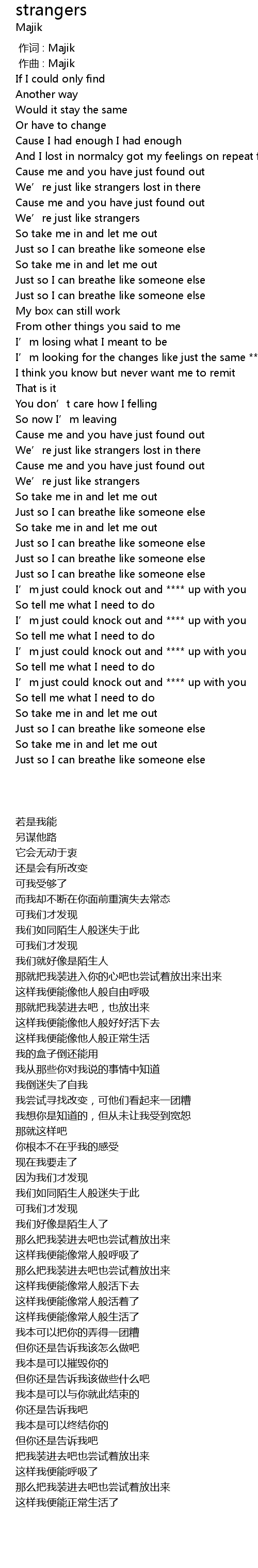 | [01:34.00] | 我们如同陌生人般迷失于此 |