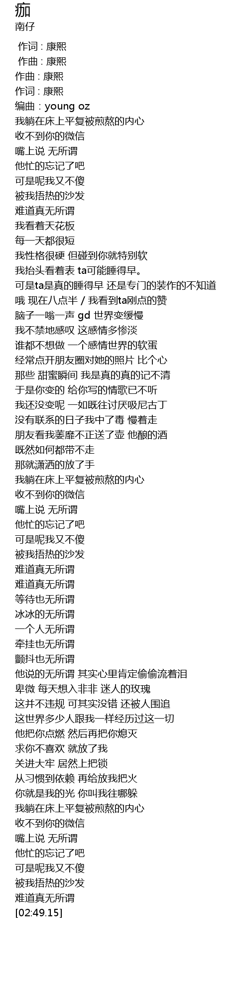| [01:56.32] | 他说的无所谓 其实心里肯定偷偷流着泪 |