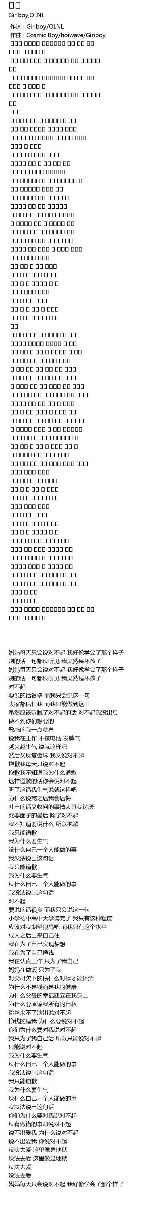 | [00:00.000] | 作词 : Giriboy/OLNL |