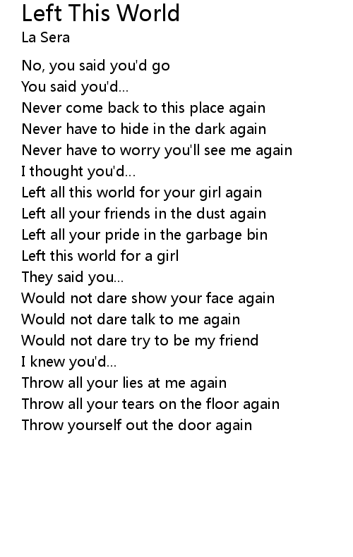 | Left this world for a girl | |