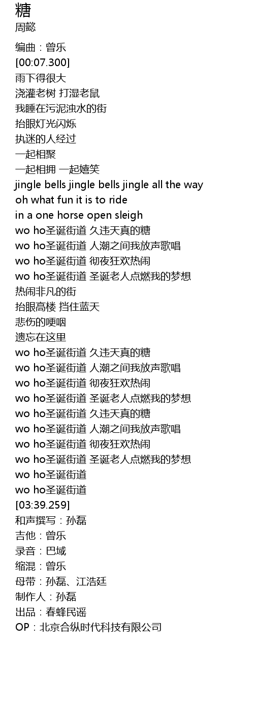 | [01:04.968] | wo ho圣诞街道 久违天真的糖 |