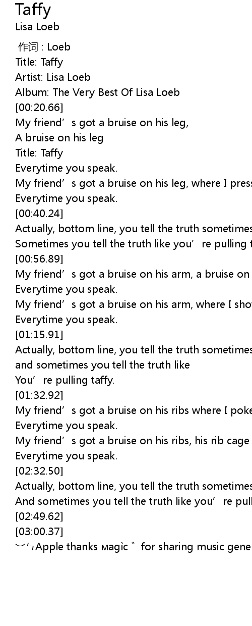 | [00:26.19] | Title: Taffy |