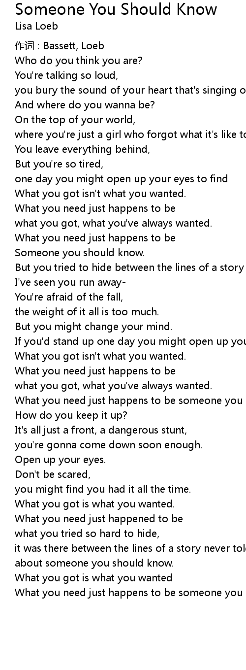| 歌曲 | Someone You Should Know |