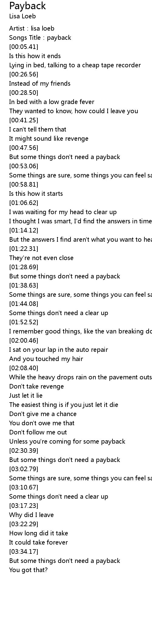 | [00:03.47] | Songs Title:payback |
