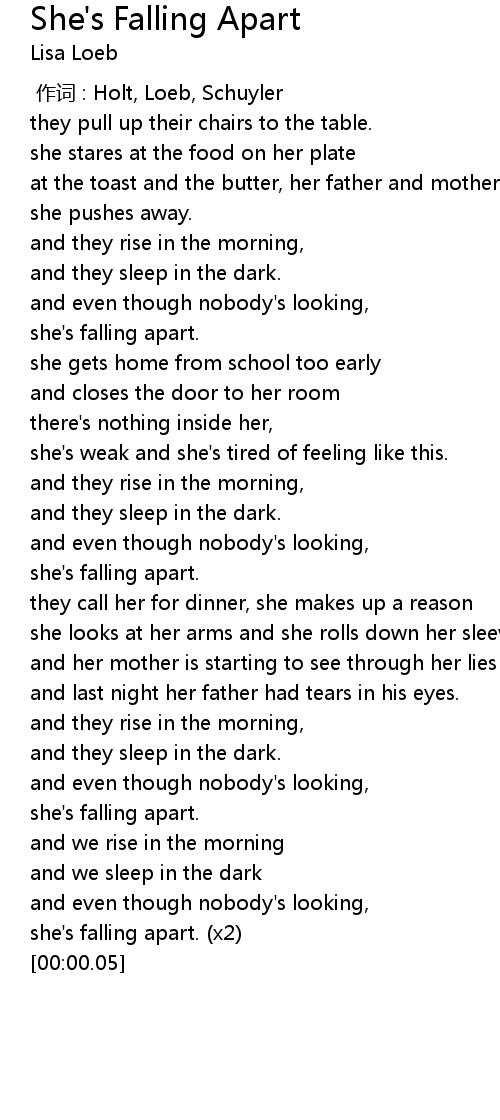 | [01:59.47] | she's falling apart. |