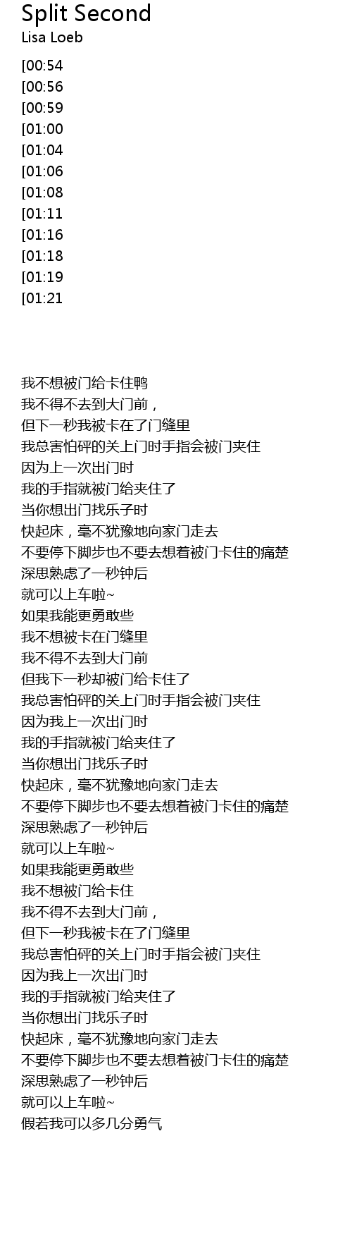 | [00:54] | 我不想被卡在门缝里 |