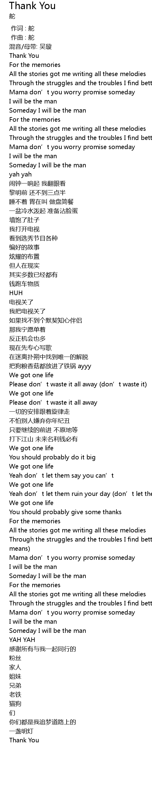 | [02:09.29] | 感谢所有与我一起同行的 |