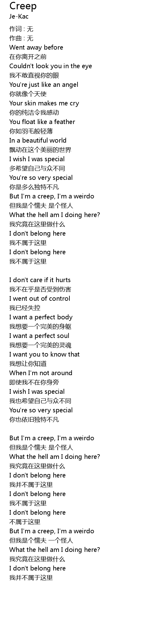 | But I' m a creep, I' m a weirdo | |