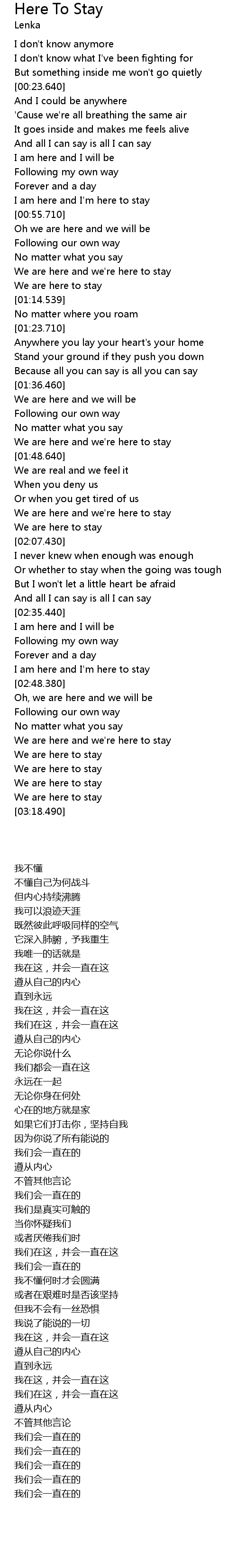 | [03:16.700] | We are here to stay |